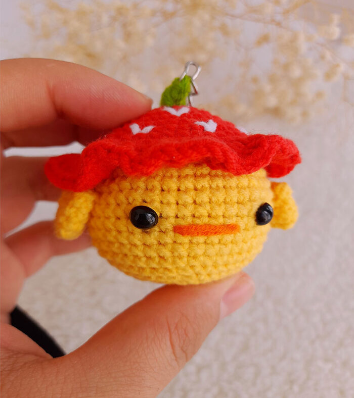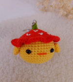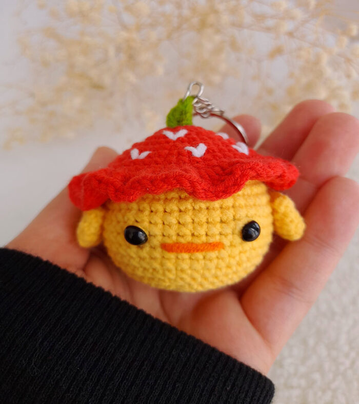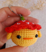 جاکلیدی بافتنی طرح جوجه با کلاه توت فرنگی با کاموای ترک بافته شده است.این آویز مناسب برای جاکلیدی،آویزکیف و ماشین میباشد.